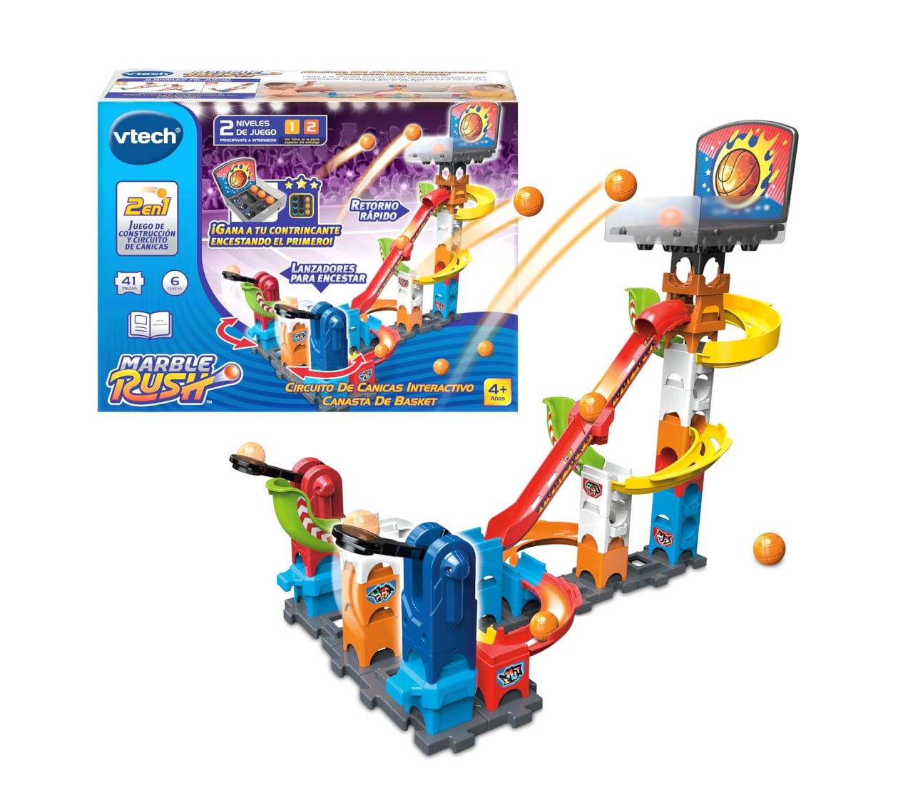 Circuito de canicas interactivo y juego de construcción 2 en 1 VTech Marble Rush Canasta de Basket, con 2 niveles de dificultad, 6 canicas incluidas y diseño modular compatible con otros circuitos de la misma gama