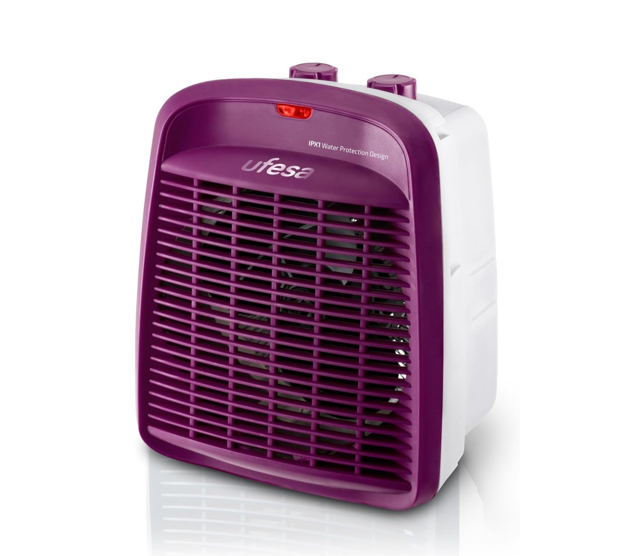 Calefactor compacto Ufesa Persei, con 2000W de potencia, termostato regulable, 2 niveles de calor, función ventilador, protección contra sobrecalentamiento y diseño apto para baño con protección IPX1