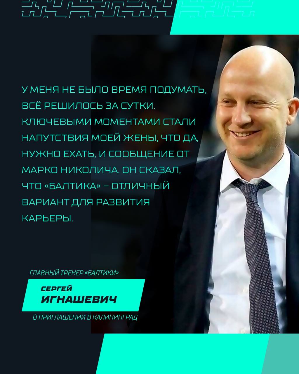 Если я ему скажу, что у нас заезд в отель, а на обед и ужин нам нужно сесть в такси и поехать в другую точку в городе, тренироваться — в другой город, потому что только там натуральное поле, а играем мы в четвертой локации, то Юра хорошенько подумает, — приводит слова Игнашевича пресс-служба «Балтики».