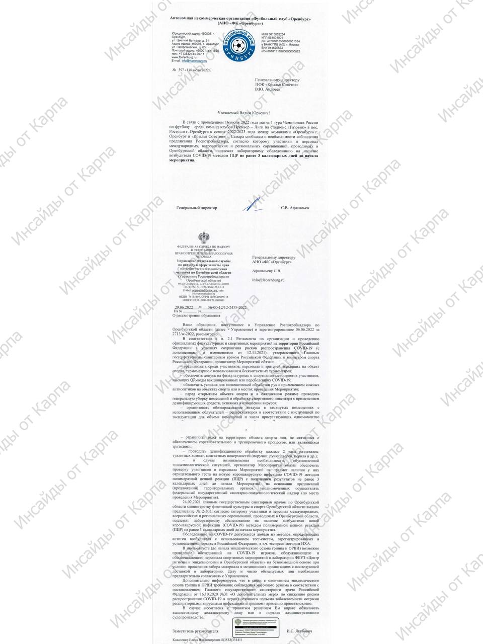 Из-за постановления местного Роспотребнадзора все соперники «Оренбурга» должны иметь на руках ПЦР-тесты, сделанные не позднее 3-х дней до игры (о чем ранее писал Артем).