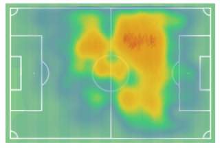 Если вы посмотрите на его тепловую карту, то увидите, что он проводит больше времени на чужой половине поля, но не совсем рядом с чужой штрафной. Это легко объясняется не его позицией, а манерой игры датчан - они доминируют в своем первенстве. То есть владеют мячом гораздо больше, чем их соперники. То же самое сейчас видим в «Спартаке».