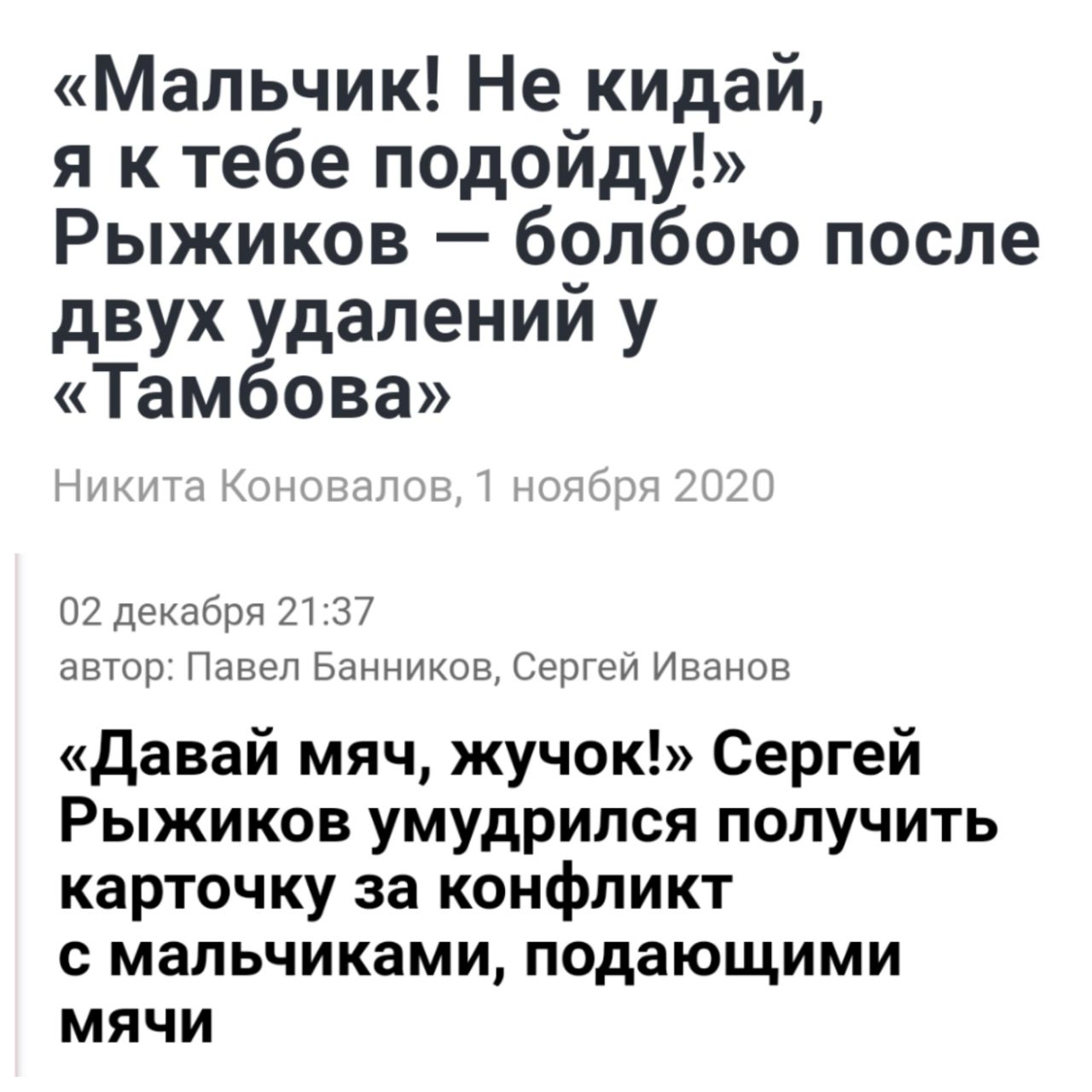 - Мальчик, не кидай! Я к тебе сам подойду! - микрофоны выхватили эту фразу Сергея во время трансляции. Интересно, что лет семь назад , когда Рыжиков играл за "Рубин", тоже в матче с "Динамо" возникла обратная ситуация. Казанцы проигрывали в гостях и динамовские болбои не спешили подавать мяч вратарю соперника. Однажды, когда у Рыжикова оказалось сразу два мяча, Сергей швырнул один в мальчика - и получил предупреждение. Потом вратарь был с ними мягче, приговаривал: "Ты, жучок, давай мяч сюда!"