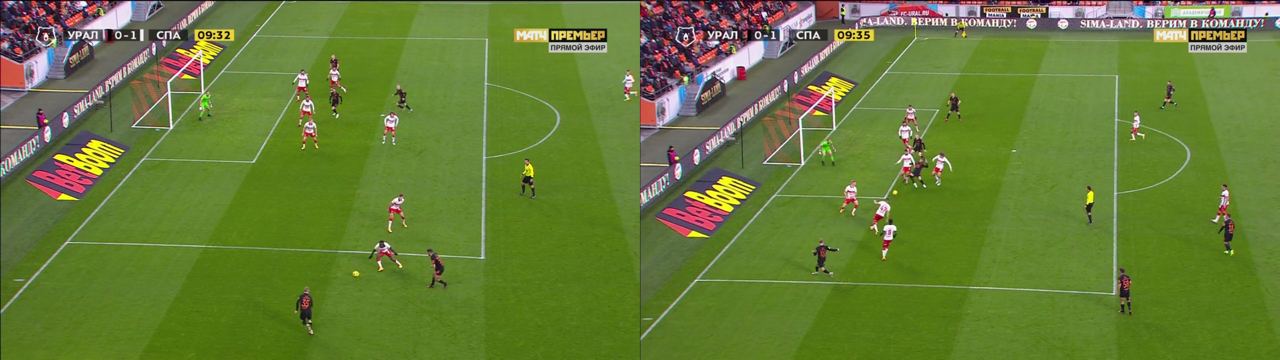 Итог: во втором тайме «Урал» почти ничего не создал через фланги, а забил после ошибки Ларссона на мяче. Не знаю по поводу фола при отборе Августиняка, но фейл Ларссона – невероятно характерен для любого атакующего футболиста. Он пытался обыграть, но одно дело обыгрывать перед штрафной, другое – когда играешь в центре поля, где опасность обреза возрастает стократно. Впрочем, Ларссон все равно провёл сильный матч, его влияние в изменение структуры игры во втором тайме – колоссально. Ну и Тедеско, конечно, молодец.