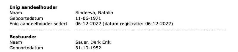 Единственным владельцем нидерландского "Дождя", а именно нидерландской компании TVR Studios B.V. остается Наталя Синдеева, а Дерек Саурэр в ней значится лишь как директор https://t.me/rusbrief/95401