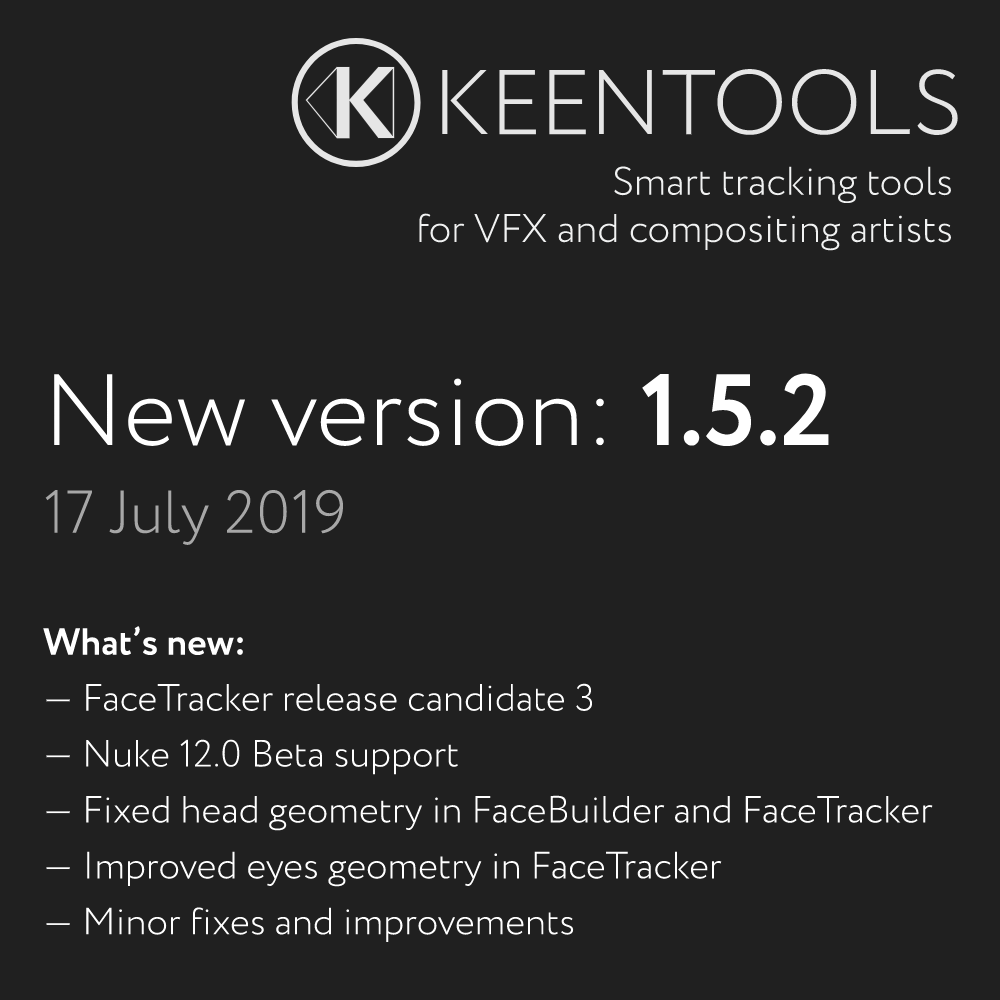В сегодняшнем немного особенном апдейте у нас изгнаны прокравшиеся дьявольские влияния на геометрию головы в FaceTracker и FaceBuilder; улучшены глаза в FaceTracker, теперь они хорошо закрываются и прекрасно открываются; добавлена поддержка беты Nuke 12; ну и конечно всякие мелкие фиксы и улучшения.