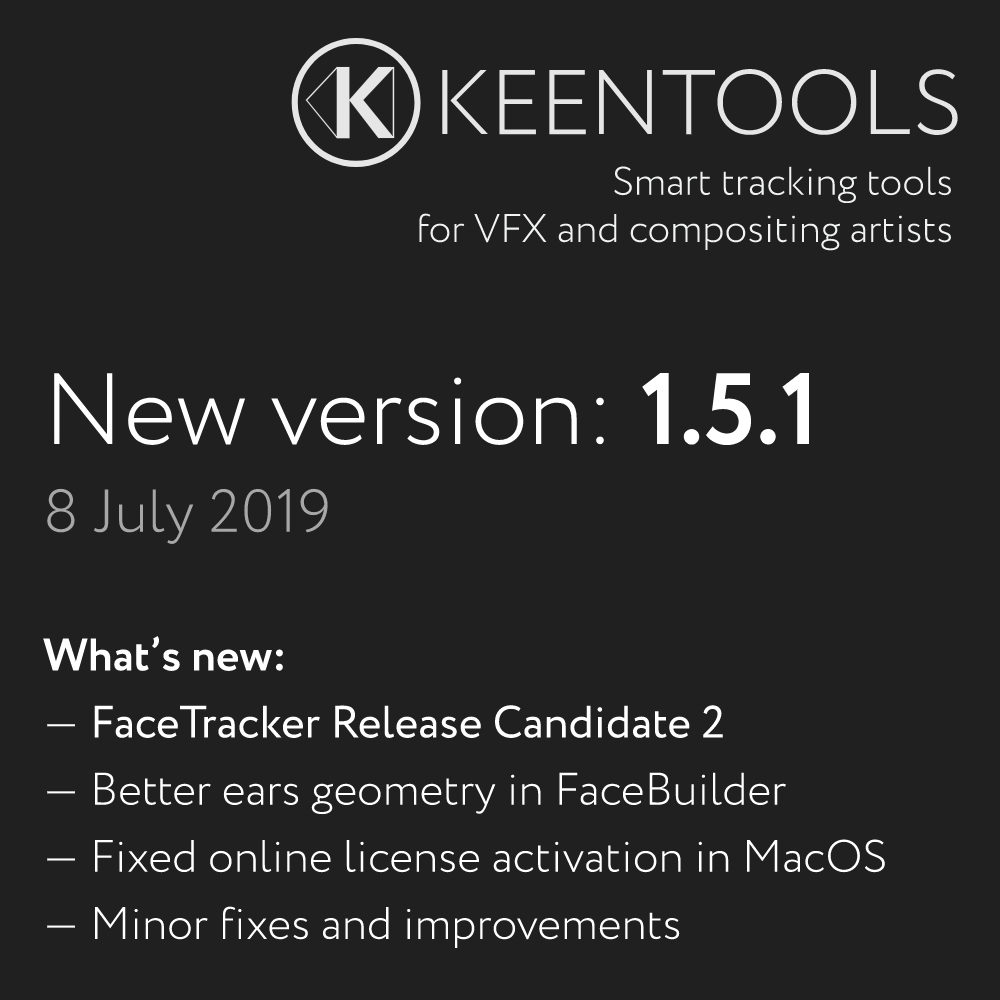 В сегодняшнем релизе 1.5.1 у нас FaceTracker RC2. Из заметных улучшений: геометрия ушей, которая больше не должна самопересекаться и починена онлайн-активация лицензий в MacOS. Наши любимые "незначительные фиксы и улучшения", конечно, тоже присутствуют! :)