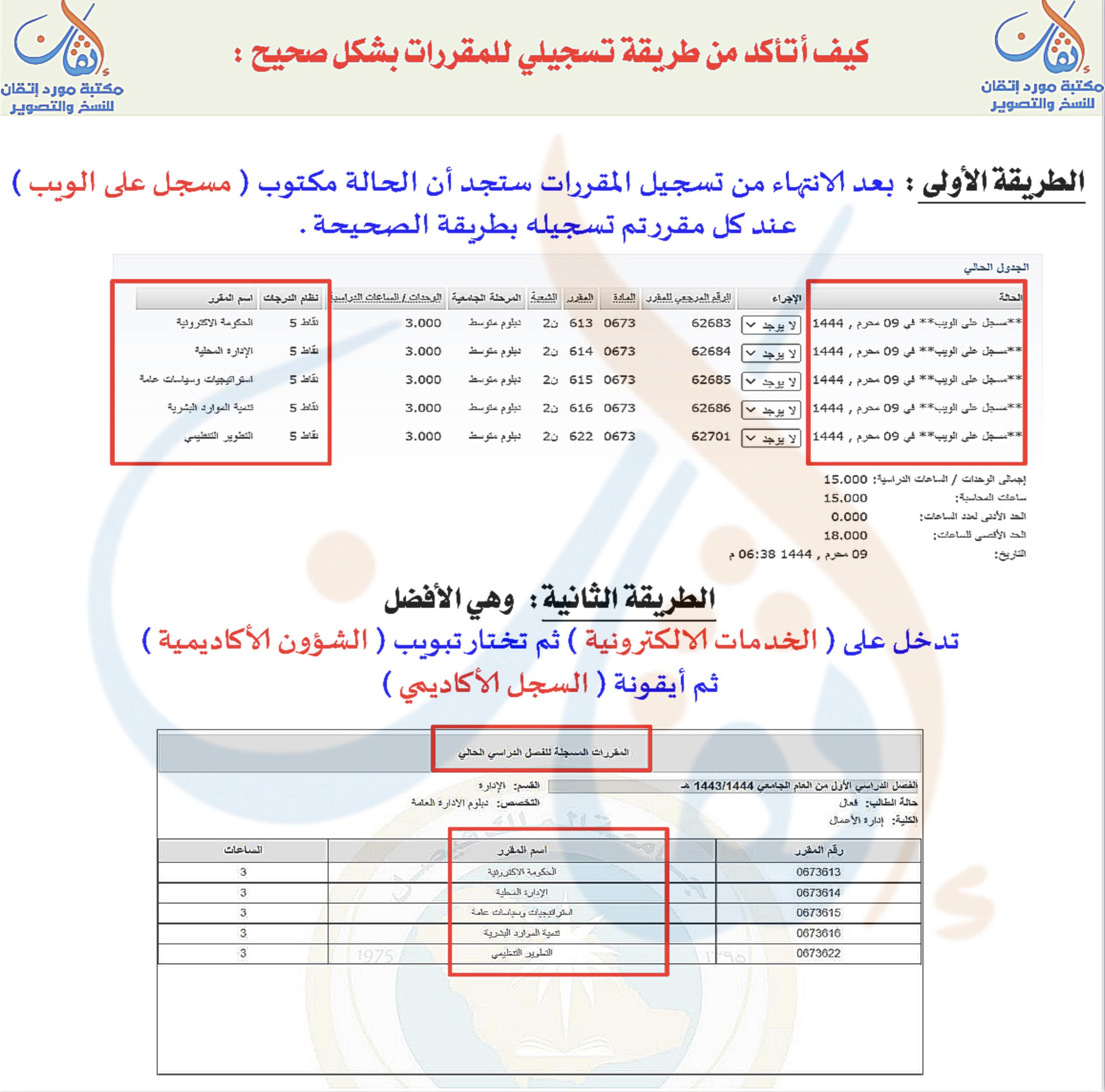 🔴 التأكد من طريقة تسجيل المقررات بشكل صحيح :