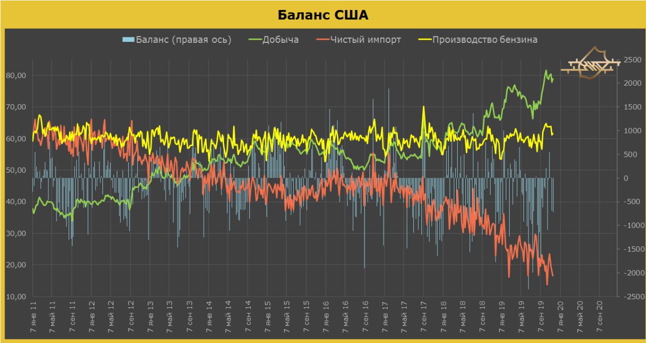 ❗️В целом, баланс запасы\спрос на рынке нефти и нефтепродуктов выглядит лучше чем годом ранее, т.к. экспорт США сильно вырос в 2019 году.