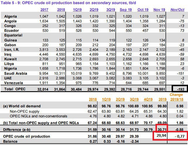 ❗️Спрос на нефть ОПЕК в 2019 году прогнозируется на уровне 30,7 мб\д (обведено красным прямоугольником на картинке).