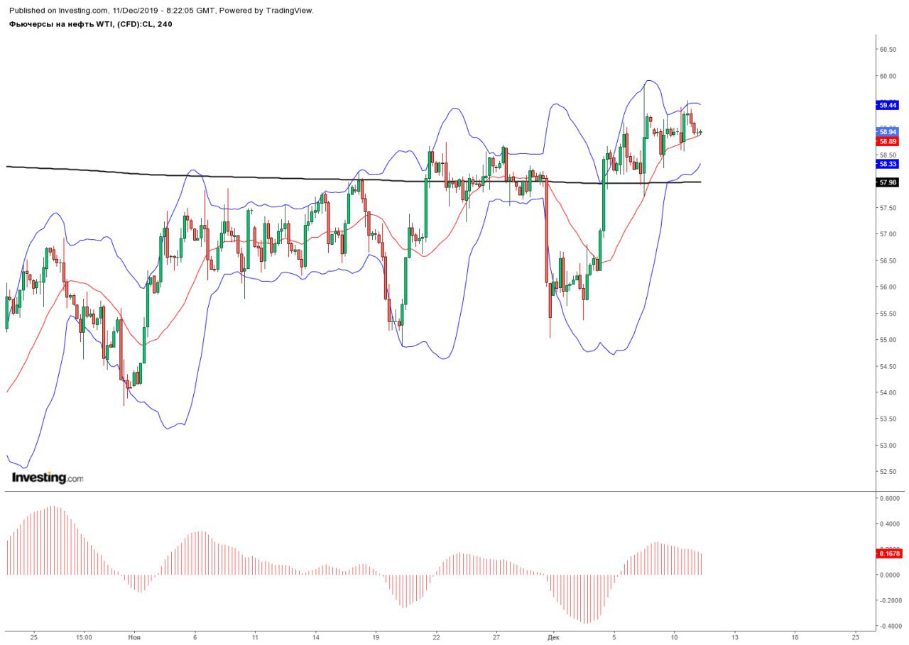 Позитив на рынках продолжает царить, при стоящем в боковике золоте, нефть вяло движется вверх, если мы не упадем с текущих уровней и пройдем к пикам сентября, то сценарий снижения ломается. С текущих уровней возможен технический перехай 61+ по WTI в течении недели.