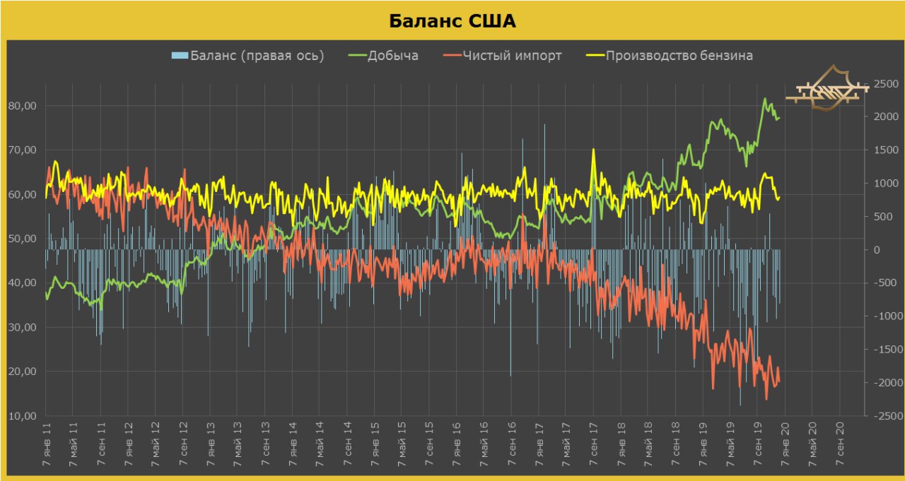 Если верить Минэнерго, то на физическом рынке США наблюдается избыток нефти и нефтепродуктов. При этом нефтепереработка также ниже прошлого года. Но ситуация с низким уровнем чистого импорта делает рынок тонким, что добавляет рисков нефтетрейдерам.