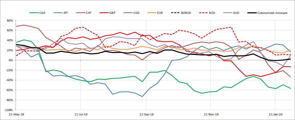 В модель входит ряд данных о распределении позиций участников на основании отчетов СОТ, публикуемых Комиссией по товарам и фьючерсам