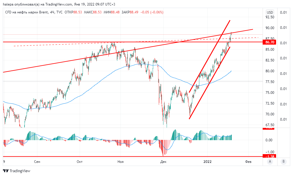 Быки третью неделю подряд держат рынок, котировки уже переписали максимумы прошлого года, последний раз на этих уровнях нефть была в 2014 году. В тоже время, производственная инфляция в Германии в декабре выросла на 5% за месяц, и это результат высоких цен на нефть и газ.