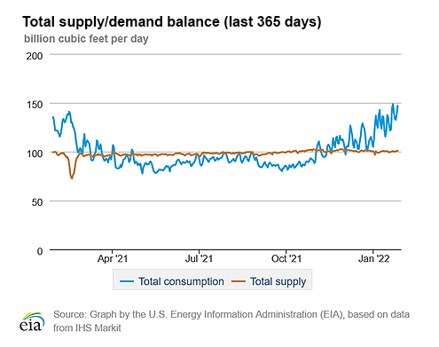 ▪️Запасы сократились на 219 млрд куб. футов; темпы отбора газа превысили среднее значение данного показателя за 5 лет (т. наз. 5-летнюю среднюю), объем отбора составил 161 млрд куб. футов.