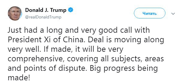 "...имел диалог с Си, переговоры движутся динамично. Большой прогресс".