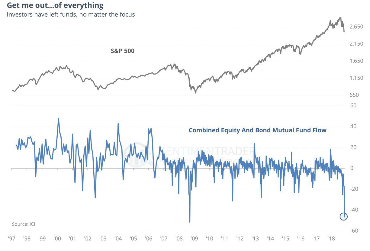#пропорции ...а вот и результат роста финансовых (ибо экономика остается сильной) рисков. Отток капиталов из взаимных фондов, акций и облигаций достиг уровня 2008 года в момент кризиса. Если посмотреть под таким углом, то мы уже в кризисе, но реалии денежного рынка (см. тут) говорят об обратном.