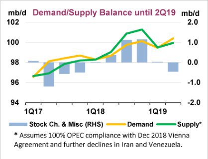 Рост спроса на 2019 год без изменений +1,4 мб\д, рост предложения чуть снижен относительно темпов в 2018 году. Но это все лирика.