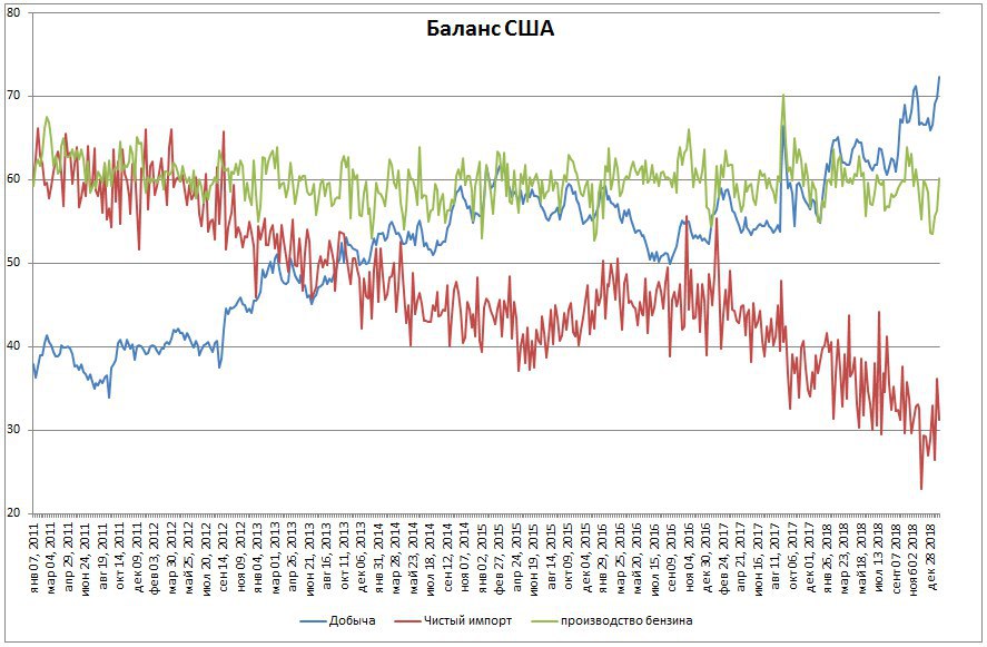 На картинке синяя - это доля внутренней добычи США в совокупном спросе со стороны НПЗ. Ввиду того, что спрос на 25 января упал, показатель взметнул на новый исторический рекорд. И сейчас 72% спроса обеспечено внутренней добычей. США движется к энергонезависимости, но это не сейчас.