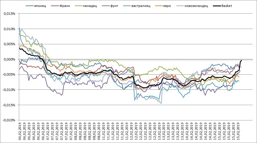 До четверга влюты слабели относительно доллара, в четверг пошел растущий тренд. Быстрее рынка оказались Франк, Йена, Н.Зеландский доллар. Медленнее всех Автралийский доллар.
