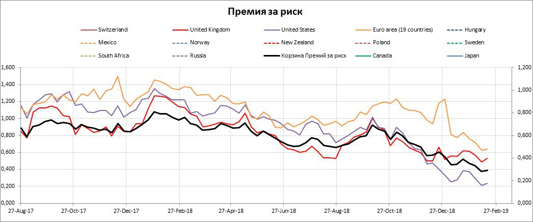 Не взирая на рост политических и экономических рисков, также роста социальных рисков (демонстрации на Балканах, Барселона, недовольство британцев по Брексит) премии за риск начали подрастать, т.е. стремятся к нормальному положению кривой доходности.