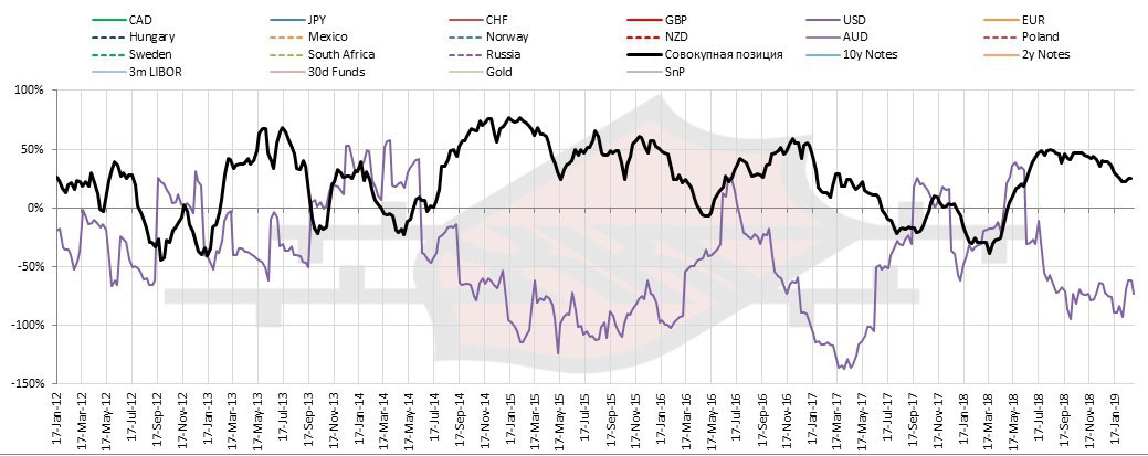 Черная - совокупная позиция хеджеров по всем базовым валютам на фьючерсном рынке биржа СМЕ.