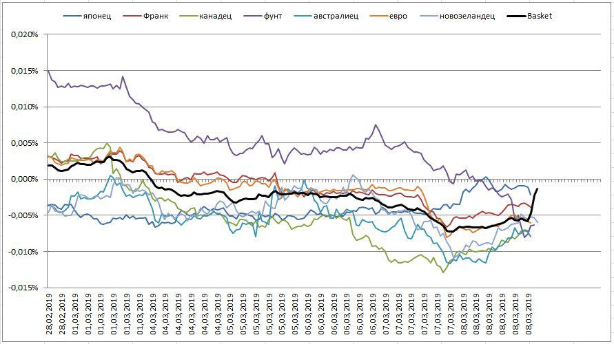 Хуже всех, как и на прошлой неделе японской йене. Там и с экономикой неважно, да и в регионе тоже так себе. Торможение делового цикла в Китае хуже ожиданий, а с торговыми переговорами с США все не так гладко. Пока Трамп отменил планы по вводу новых тарифов на продукцию из Китая, и потребовал от Китая отмены тарифов на с\х продукцию из США.