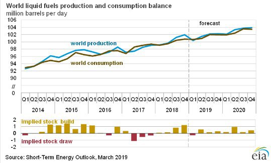 #нефть Вышел отчет за февраль и обновленный прогноз на 2019-2020 годы от Минэнерго США.