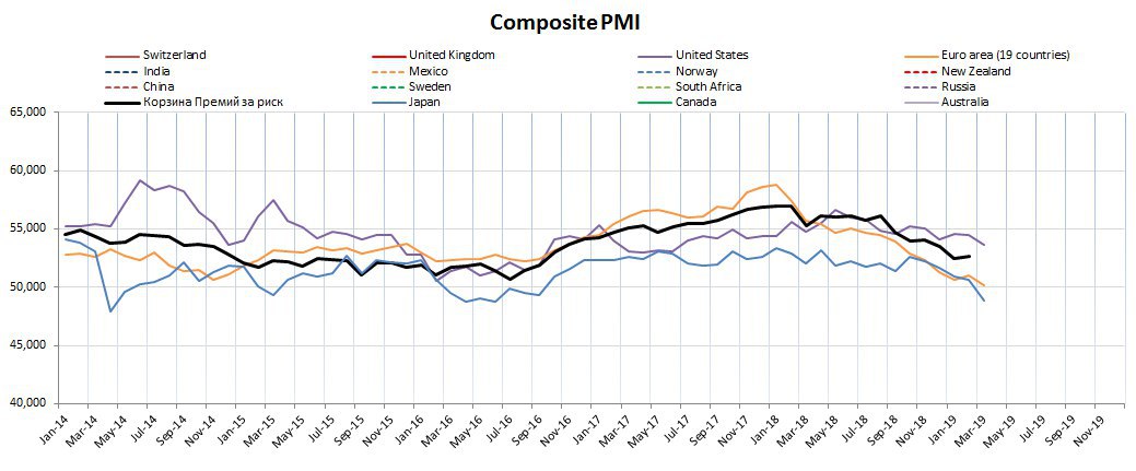 Совокупно по рынку развитых стран (черная) дела обстоят пока еще более-менее, хотя кривая стремится к инверсии. Великобритания держится, а ЕС хоть и в падающем тренде (сужение ставок), но, тем не менее держится над нулевой отметкой.