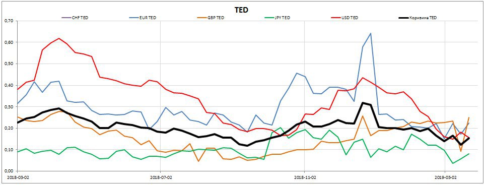Черная - совокупная по рынку. В целом ТЕД-спред по валютам фондирования возможно нащупал дно.