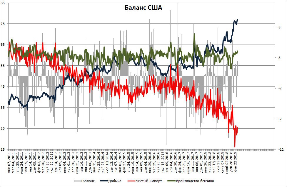 А что предложение? Вот тут и загвоздка, КСА собирается сокращать экспорт в апреле до 6,5 мб\д, это минимумы с 2015 года, Венесуэла под санкциями и импорт венесуэльской нефти вторую неделю составляет 0 баррелей. В мире, Помпео объявил, что никаких отстрочек больше не будет на пути по обнулению иранского экспорта нефти, хотя слухи ходили об обратном.