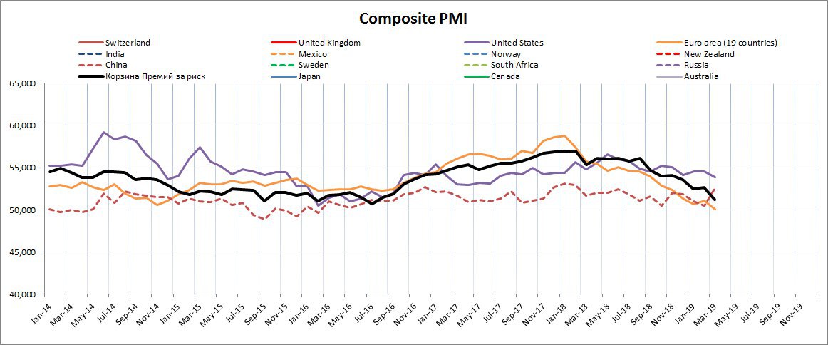 Рыжая. Еврозона прямо настораживает, там с темпами промышленного PMI совсем беда, полноценная рецессия, там же Швейцария, Канада и Япония.