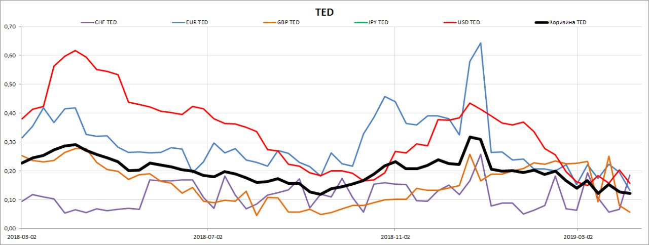#риск ТЕД-спреды по всем валютам фондирования находятся внизу.