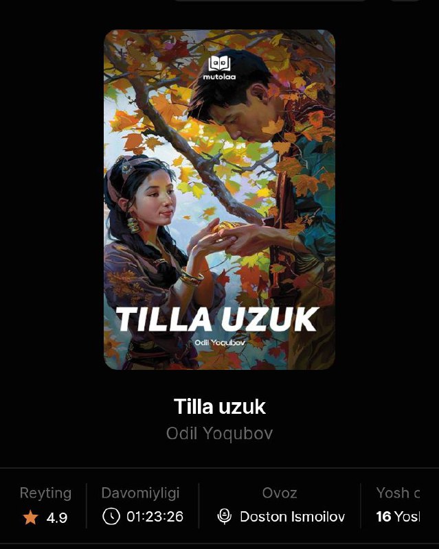 Katta asarlar oʻqiyotganimda, odatda, kichik qissa va hikoyalarni ham teng oʻqib ketaman. Buni ham shu vajdan oʻqidim. Lekin qissalarni orasidan pichoqqa ilinadiganini topish qiyin boʻlib qolgan. Baʼzilarini shunchaki oʻqib boʻlganim uchun, ayrimlarini esa vaqt ketkazishni istamaganim uchun oʻqimayman. Odil Yoqubovning “Muzqaymoq” hikoyasi yaxshi taassurot qoldirgani sababidan “Tilla uzuk”niyam ‘tatib’ koʻrgim keldi. Asarda koʻtarilgan muammo dolzarbligini hali yoʻqotib ulgurmagan. Vohid va Roziyaning baxtsizligi va unga eski urf-odatlarning sabab boʻlishi yoritilgan. Bu haqida fikrimni yozaman desam, kundalik holga ulgurib boʻlgan narsalar boʻlib qoldi hisob. Yaʼni, hozirgi “parachalar” bir-birini ustidan hukmronlik qilishi, qayerga boradi, nima qiladi, nima kiyadi - hammasini soʻrashi normal holga aylanib qoldi. Uni shuncha yil katta qilgan oʻz dadasidan soʻramagan ruxsatni hali oʻzini eplay olmaydigan bir goʻdakdan soʻrash 🙄 no, no, no, qizlar sal oʻzlaringni qadrilaringni bilinglar. Kitobda ham ikki yosh unashtiriladi. Xoʻp, buni mayli ozgina haqqi bor deylik. Lekin bola indamagan narsaga butun qarindosh-urug‘i xoʻjayin boʻlishi, qiz oʻzini maʼlum maʼnoda “tiyib” yurishi kerakligini bot-bot takrolayverish qaysi oʻlchovga toʻgʻri keladi?! Yigitning esa boshqalarga koʻr-koʻrona ishonishi ularning munosabatlari tanazzulga uchrashiga sabab boʻldi. Oqibat, bir umrlik vijdon azobi, ayriliq va baxtsizlik. Umumiy xulosa, voqelik chiroyli yoritilgan, shunchaki bekor oʻtirganda «silliq» ketadi.