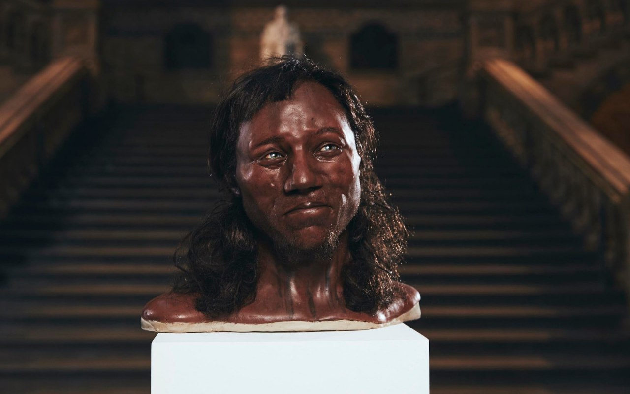 На картинке: Реконструкция лица на основе черепа древнейшего полного скелета, найденного в Британии, известного как Cheddar Man. Демонстрировалась во время показа фильма «Первый британец: Тайны 10000-летнего человека» в Музее естественной истории в Лондоне в феврале 2018 года.