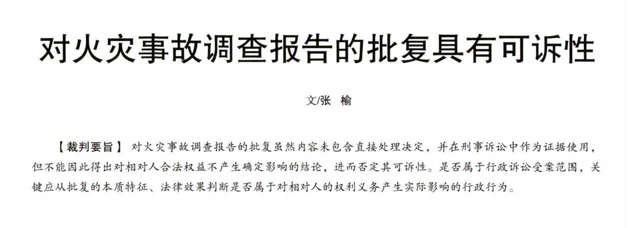 政府对安全生产事故调查报告的批复,是否具有可诉性,是否属于行政诉讼案件的受案范围?抑或批复仅为行政机关内部文件,不对当事人权利义务产生直接和实际影响?本周阅读浙江高院张榆法官文章。