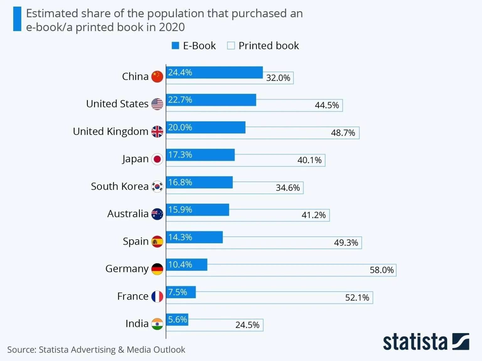 虽说电子书越来越普及,但是看书的人里边纸质书也没想象中的少,放眼世界中国还是电子书和纸质书差距最小的……