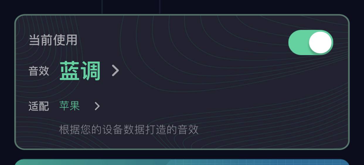 每次入了新的听歌产品,我都会把均衡器调成蓝调、耳机适配成苹果,音质会变得很有质感,中频人声清晰,低频肥厚但不腻