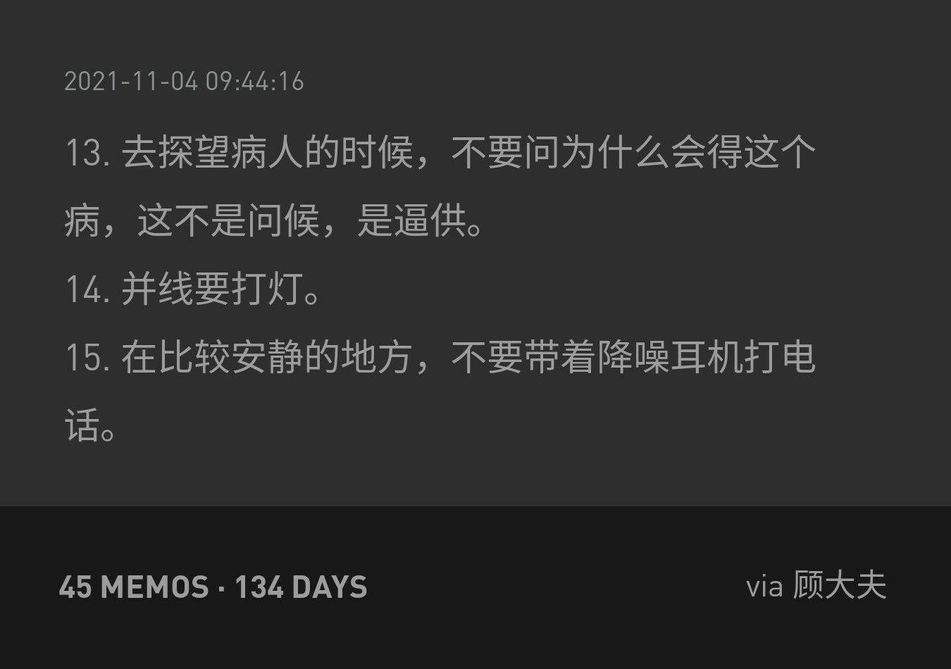 13. 去探望病人的时候,不要问为什么会得这个病,这不是问候,是逼供。