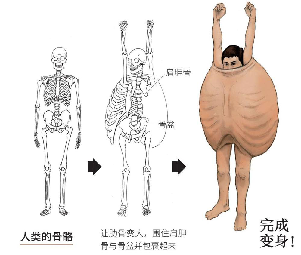 我们也可以“共情”一下,龟壳其实是乌龟变形的“肋骨”,你可以想一想不打麻药就把肋骨拔掉是怎样的感受。
