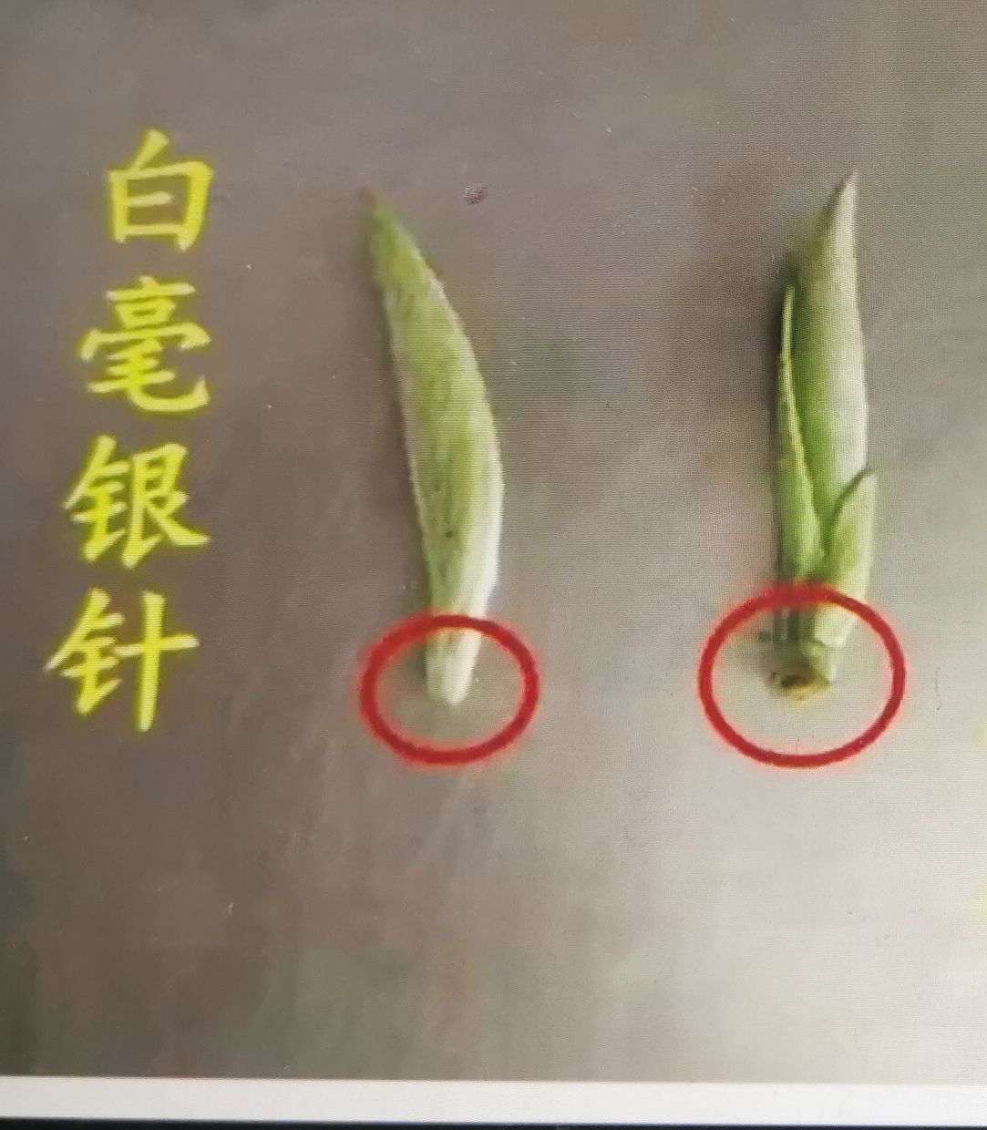 右边的有鱼叶、磷片、蹄头的不能叫白毫银针