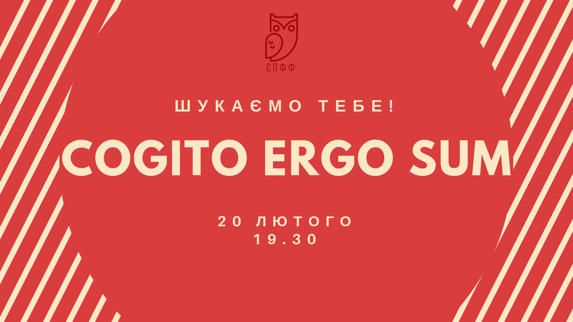Якщо ТИ розумний, сміливий та маєш бажання взяти участь у новому 🔸"COGITO ERGO SUM"🔸 – швидше заповнюй Google-форму📱: https://docs.google.com/forms/d/e/1FAIpQLScqqipHlXFEx8dNzhxLPVZjcrCSizCMb0xDCW-_Ff8CPRGgIA/viewform?usp=sf_link