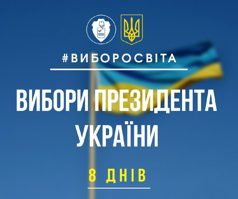 8 днів до виборів, які проводяться під очільництвом наших колег з національного ЦВК - ВИБОРІВ ПРЕЗИДЕНТА УКРАЇНИ!