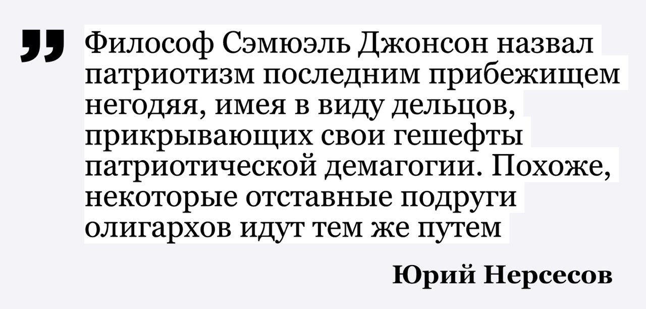 «Не сумев втиснуться в британское общество, экс-жена обер-строителя Крымского моста Аркадия Ротенберга называет Владимира Путина своим наставником. Провалив президентский конкурс "Лидеры России 2020", Наталья Ротенберг не опустила рук».