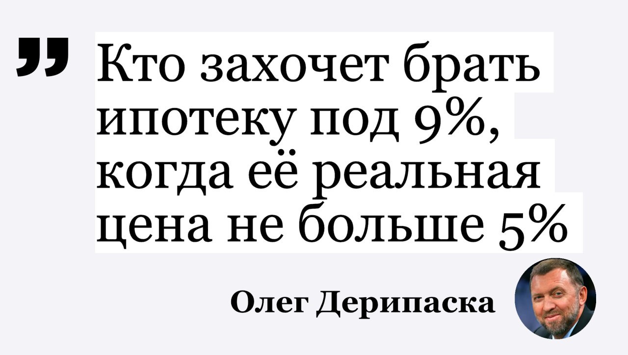 ▪️Олег Дерипаска оценил «реальную» стоимость ипотеки: