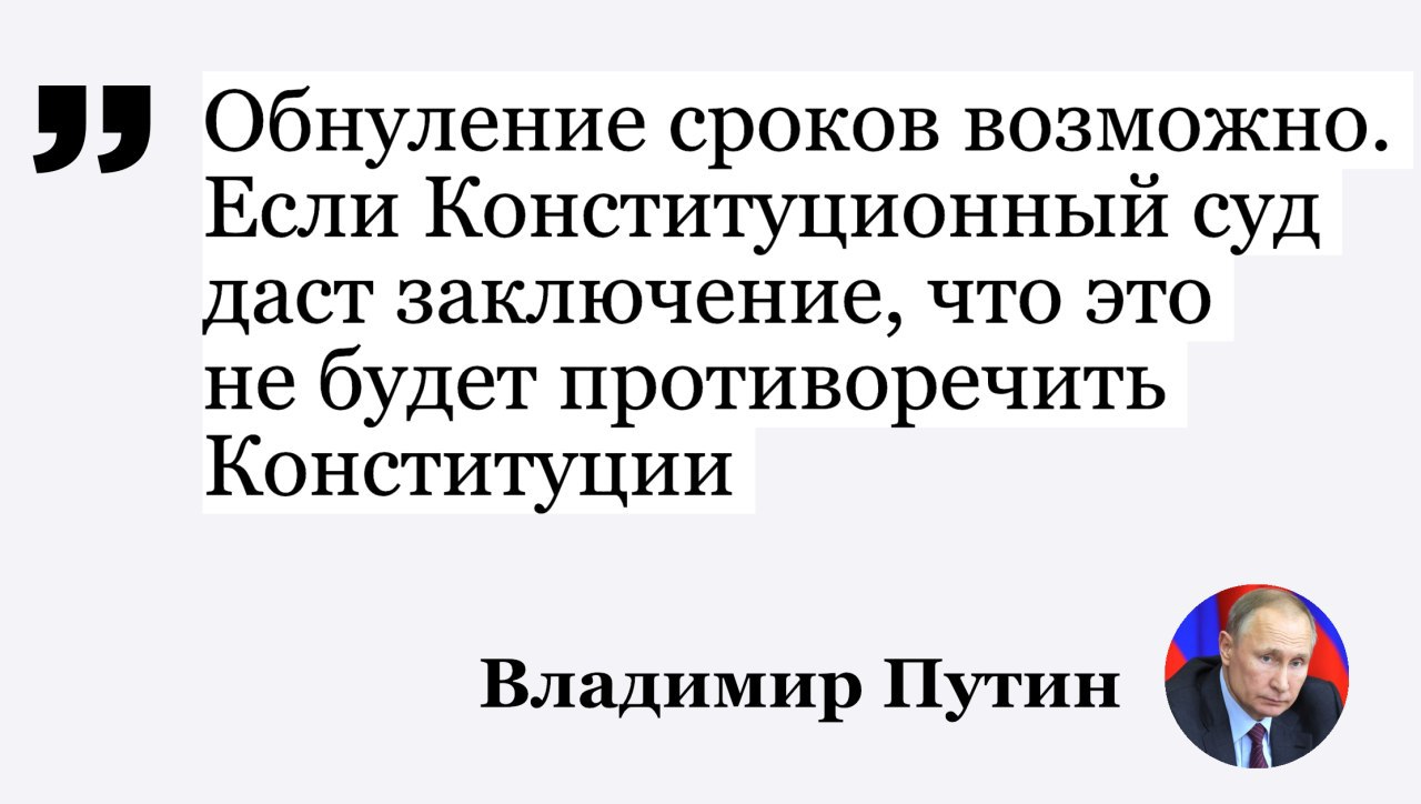 ❗️Владимир Путин одобрил поправку, согласно которой обнуляются его президентские сроки и он сможет снова участвовать в выборах.