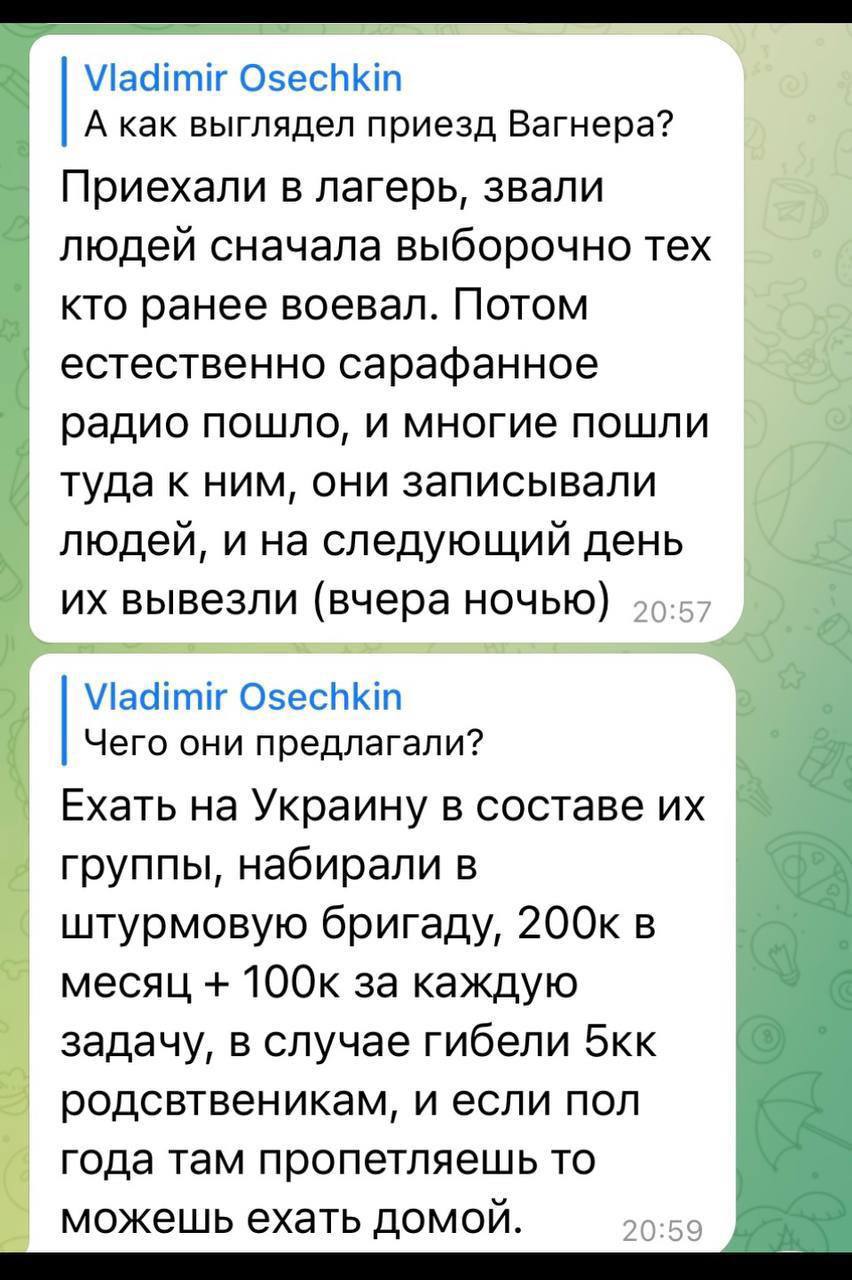 Сотрудники ЧВК «Вагнер» уговаривают заключенных принять участие в войне. Пишут, что планируется привлечь до 10000 таких «добровольцев».