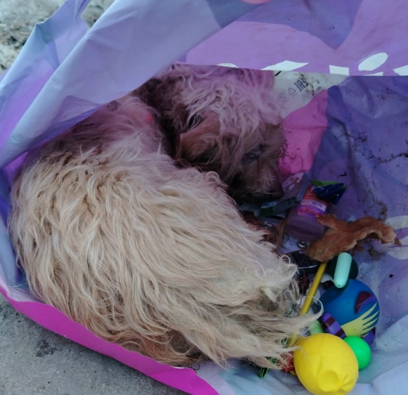 Как сообщают волонтёры группы помощи животным «Три лапы», собаку нашли в пакете с игрушками. Животное подавало признаки жизни — стоны услышал проходивший мимо мужчина. Он достал болонку из контейнера и передал её зоозащитникам.