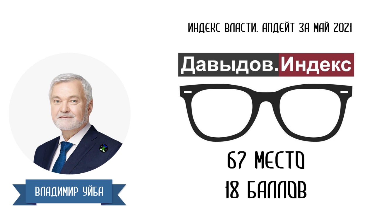 Владимир Уйба в майском индексе власти отметился на 67 месте. За май Давыдов.Индекс ему выдал всего 18 баллов, в прошлом месяце у него было 21,5. То есть не смотря на выезды в регион и прочие его достижения Владимир Викторович продолжает скатываться в рейтинге губернаторов.