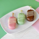 Слегка подмороженный чизкейк разрезать на куски и вставить палочки.