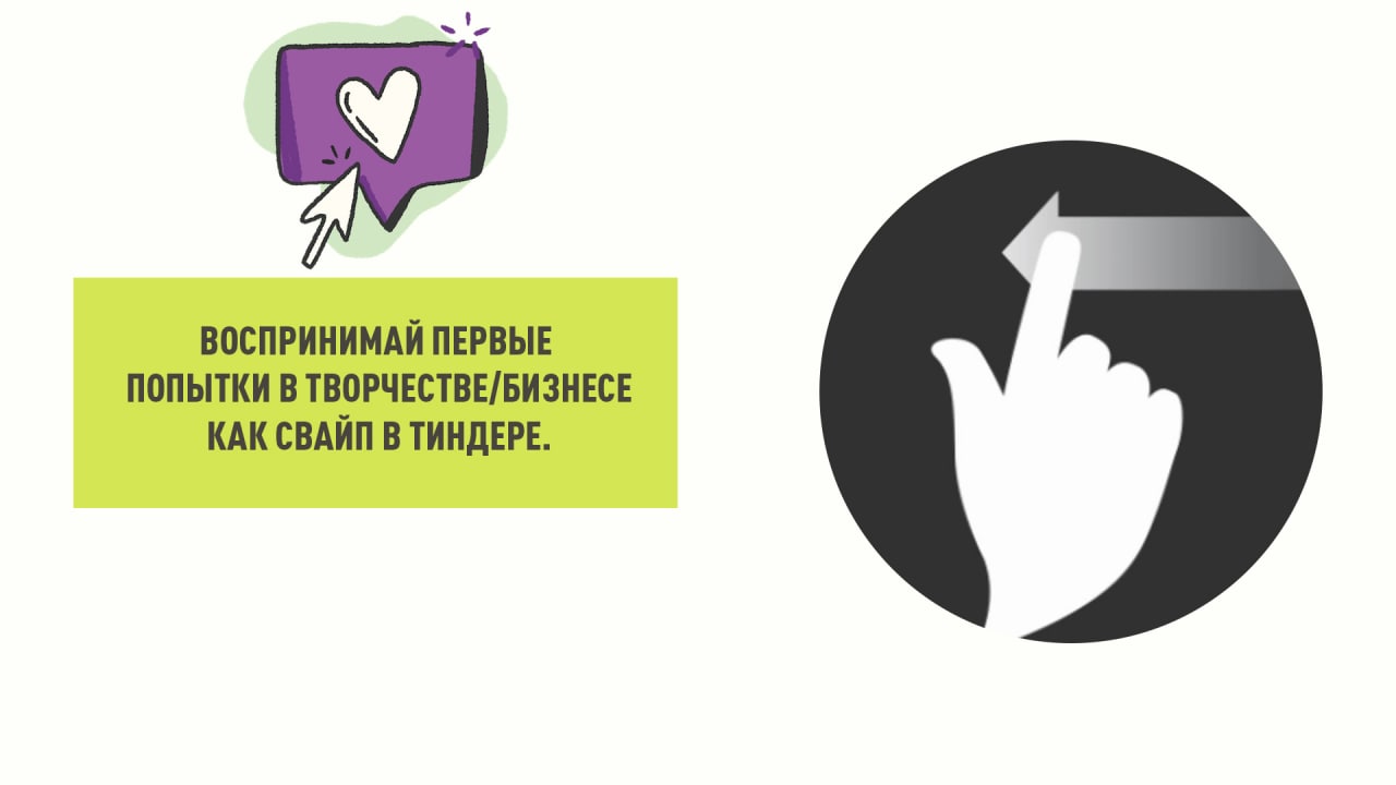 Воспринимай первые попытки в творчестве/бизнесе как свайп в Тиндере.